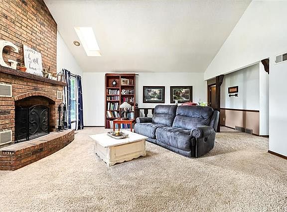 Fantastic RANCH with partially finished walk out basement on acreage, this home overlooks a 10 acre neighborhood fishing lake. Newer replacement thermal windows, NEWER A/C unit. Home is located in county for lower taxes. Close to schools and located on a dead end street (low traffic). Sky lights in living room allows for natural light! Gorgeous view of lake from kitchen, great. room., and master bedroom. Shelves in laundry room stay for great pantry. 3rd car garage behind home via walk-out! Many nut/fruit trees!