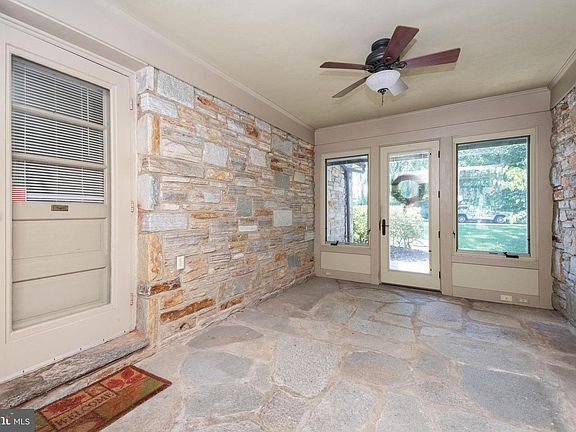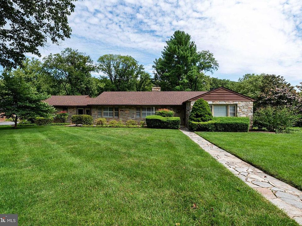 Stunning 4 bedroom 3 full bath butler stone rancher. The 27 x 23 first floor vaulted ceiling family room has access to the patio, a beautiful working stone fireplace and wood floors. There are skylights in the family room as well. There is a formal living room with a stone fireplace & dining room both with wood floors and plantation shutters at all of the windows. The kitchen has great space and is accessible to the enclosed patio and to the breakfast room with built-ins. The master bedroom has it's own master bath. The second bedroom has a hall bath with tile flooring and a large linen closet. -Roof was replaced in 2012-The breezeway between the kitchen and garage has a stone floor-exposed stone walls and Pella doors and windows accessing the front yard and the back patio. The gorgeous back patio 25x50 of aggregate stone has beautiful decorative metal railing that makes for great outdoor space for entertaining and relaxing. The lower level has two bedrooms with a full hall bath. There is also an area under the entire original house of unfinished basement- houses two oil tanks, furnace and washer/dryer. Area could be finished if needed. The yard is spectacular over half an acre-backs to woods for wonderful privacy. This home has skylights that brighten up every day- and easy access to the back yard from the breezeway or family room