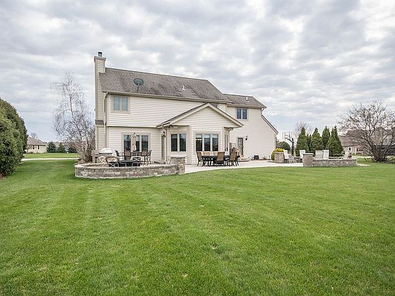 Meticulously kept, open-concept, custom built-in River Reserve subdivision, Hartland. Two-story entry foyer accessible to formal dining room and large bright kitchen with center island. Breakfast bar for a quick bite and adjoining dinette for more informal dinners opens to a stunning expansive brick patio. Roast marshmallows or have a glass of wine by a built-in fire pit. Upstairs bedrooms are large. Master suite boasts dual separate sinks, Whirlpool tub, separate shower, walk-in closet, under a vaulted ceiling. Game room and lower level with wet bar and full bath to entertain in Wisconsin winters. Close to Highway 94, golf courses, shopping, Ice Age Trail and more in Arrowhead School District. Move in ready!