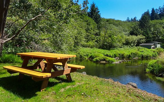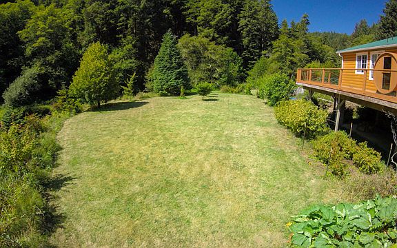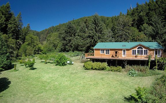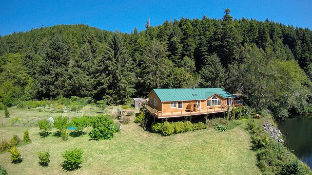 Your own little paradise on the river. Almost 2 acres with Yachats River frontage. Beautiful log sided elevated home with decks on all 4 sides. Circular kitchen counters w/tile accents and downdraft propane cook top in island + walk in pantry. Living room overlooking the river with wood stove . Formal dining room + morning room. Master w/2 sink bath + retreat and door to deck. Walk in closets in all bedrooms. Large garage + Greenhouse