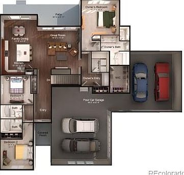 The Minturn is an open-concept ranch floor plan. This home has a four car garage. As you are in the entry, you will see two bedrooms and two baths. The kitchen, great room and dining room are open to one another and have Shaw West Valley Espresso engineered hardwood floors. There is also a fireplace in the great room. The kitchen includes a stainless steel microwave, Whirlpool gas double oven range and dishwasher, White Icing maple cabinetry with crown molding, a full tile backsplash and Pegasus countertops. There is a spacious kitchen island with seating capabilities too. There is a back patio on this home. Towards the back of the home is the owner's suite with a large walk-in closet and a deluxe owner's bath. This home includes an unfinished basement. The homesite is 1.01 acres.