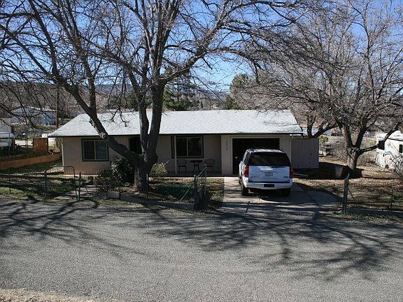Great home in Mayer, AZ with large lot and two separate external utility buildings. Great mountain views!! This home includes a room (Living Room) heat-pump heating/cooling systems, garage with separate laundry room, lots of kitchen storage, refrigerator and washer/dryer. Attached evaporative cooler has been closed off and is not presently used.