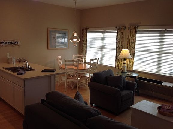 Beautiful second level, corner unit with water views and sunsets from every room. Private shore (beach) with pier. Restaurant on grounds. Short walk to Wilson's Ice Cream and specialty shops. Historic hotel renovated & condominium conversion in 1999. Personal property tax (2017) parcel# 1210281 is $26.83. Waterfront property portion on west side of Hwy 42 ls zoned Protected Waterfront and is in FEMA 100 yr floodplain. All property on east side of Hwy 42 is zoned Commercial Central (CC).