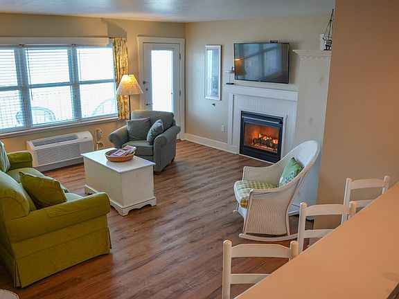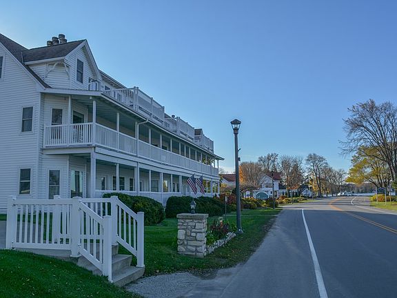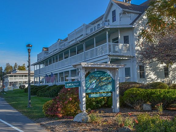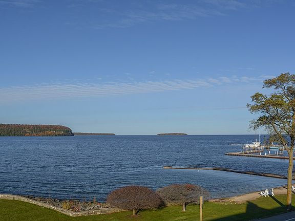 A rare offering! Enjoy absolutely phenomenal, panoramic views of Eagle Harbor and Eagle Bluff from this beautiful one bedroom, third story unit at the historic Edgewater Resort. Features include a full kitchen, attractive decor (offered furnished), gas fireplace, large whirlpool tub, spacious deck, and loads of windows to capture the view. Walk to all downtown activities, have a dip in the private outdoor pool, then watch a gorgeous sunset over the water. A fantastic rental history makes this an affordable Door County getaway.