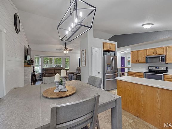 Don’t miss this beautiful 4-bed, 2-bath home just off Hwy 21—15 minutes from both De Soto and Potosi. Located on a corner lot, this move-in ready home features vaulted ceilings in the living room and master suite, an electric fireplace, and a spacious layout. The kitchen and dining area open to a new composite deck, perfect for entertaining. Below, enjoy a covered patio with hot tub for relaxing evenings. The newly finished basement adds a large family room and a 4th bedroom—ideal for guests or a home office. Recent updates include a brand-new HVAC system for year-round comfort. Outside, the full concrete driveway provides plenty of parking, and the large backyard features a kids' playground, making it great for families. This home offers a perfect mix of modern updates and outdoor enjoyment—schedule your tour today!