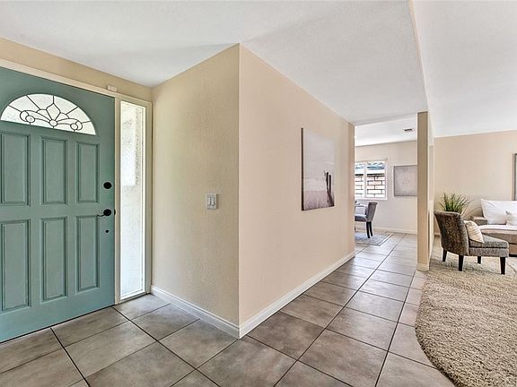 Priced right to sell this Four Bedrooms and two bathrooms single family home in a great neighborhood that is approximately about 3 miles from the Beach. Spacious living room with inviting fireplace, ceramic tiles in hallway, bathrooms, dining and kitchen. Large eating area with tile countertops, recessed lighting and lots of cabinets. Refrigerator is included in the sale price. Hallway also has recessed lighting and ceilings throughout the home has been scraped. Carpet in bedrooms and living room. Home boast newer windows, new sliding glass doors, newer (less than 3 years old) water heater, newer (less than 2 years old) garage door opener, new epoxy painted garage floor. New front door porch light and front garage light, New bathroom exhaust fan that is super quiet. Mirrored closet doors in all bedrooms. Washer/dryer hook ups is in the garage. Large backyard with block walls has lemon and papaya trees. Home is in a good location with good schools, freeway close, shops & restaurants. Fairwind Park and hiking trails are within walking distance and there is a dog park close by. The Santa Ana river bike trail is minutes away that goes to the beach. Hurry and bring your buyers since this home will not last long.