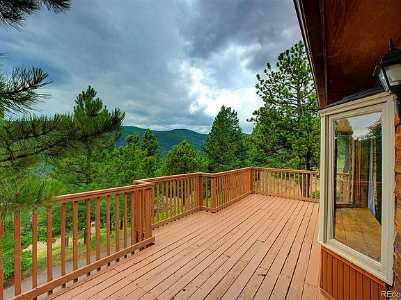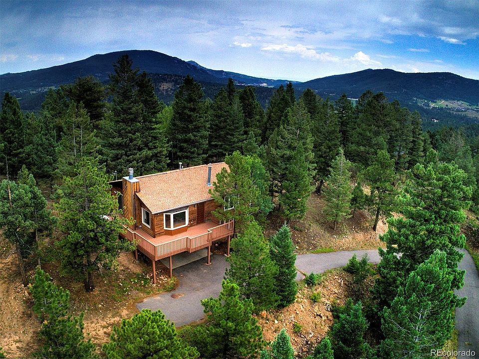 Have you dreamed of a vintage mountain cabin? Views? Great acreage that abuts Open Space and is subdividable? Convenience and seclusion in the same package? All this plus easy access to Conifer, 285 and only 30 minutes to Denver? This is your spot. Whether you're looking for a weekend getaway or a terrific year round residence, this home is ready for you now with just a little love. Summertime, get out of the city heat to mountain coolness; Winter, build a fire and enjoy cozy holidays. Keep the fantastic vintage vibe complete with Hotpoint range or update to create your own style. Large wrap around deck and loads of usable land surround the house and beautiful views from every vantage. Great potential additional build site with possible BIG views if you're looking to build a separate second or replacement larger home (verify county feasibility, call listing agent for initial info on subdividing given by Jeffco). Tuck under garage attached but plenty of room to add a larger garage if desired. Raised ranch on the front, but easy to drive up to the main level to unload those groceries. Main level has open floor plan living/dining/kitchen with wood burning fireplace, vaulted ceiling, 2 bedrooms and full bath. Finished lower level walkout features a separate entrance, garage entrance, family room with woodstove, laundry and office/den or non-conforming bedroom. Septic is rated for 2 beds. Fantastic southern exposure and a paved driveway. Road is privately maintained, voluntary road association, $500 per year.