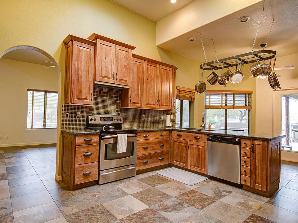 Amazing opportunity to purchase a beautiful home on over an acre of horse property in east Mesa with no HOA! This spacious and open floor plan features 4 bedrooms and 2.5 baths, upgraded kitchen, extra high ceilings, new wood and tile flooring installed in 2008 and skylights providing tons of natural light. This home is made for entertaining with an oversized paver patio with built in bench seating and a beautiful outdoor kitchen. The backyard features desert landscaping with a nice size turf lawn and landscape lighting. Towards the back of the lot is a large coral with one stall and a separate, multifunctional building with power that could be used as a barn, workshop or storage. House was newly painted in 2014. Close to hiking and bike paths and has great views of surrounding mountains.
