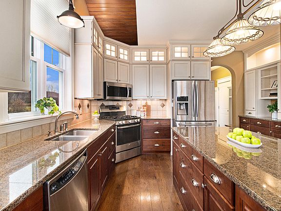 Current mortgage is assumable at 3.125! Must see this unique home with rental income potential. Main home boasts 4 spacious bedrooms and 3.5 baths. The elegant kitchen with large island and wood barrel ceiling is an additional must see feature. Step outside onto the deck and you'll be greeted by a sprawling 1.38 acre lot along with a 1440 sq ft outbuilding for your storage needs with a 16' overhead door and a 6' x 40' covered porch to enjoy. The apartment or in-law suite with it's own private entrance is a 1 bedroom, 1 bath open concept barrier free home which includes it's own 1 stall garage. Call and set up your showing today!