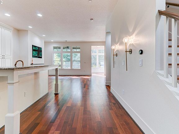 This pristine light-drenched luxury townhome's tranquil outlook is greenspace. "Renaissance" build endures, high quality at every turn. Hardwoods added & now grace main & upper levels, new carpeting lower level ('20.) Flexible space for dining, office & chillin'. Soaring ceilings, covered patio plumbed for BBQ! Phenomenal HOA amenities: Walking trails, pool, A+clubhouse all in the community. Peterkort Woods offers classy privacy & community, nestled in a premiere, accessible west side location.