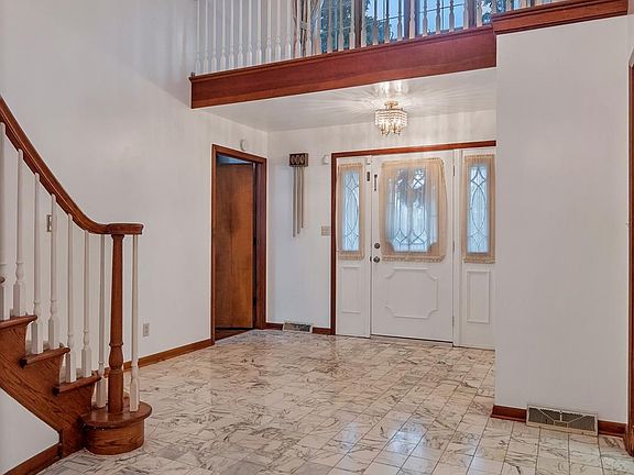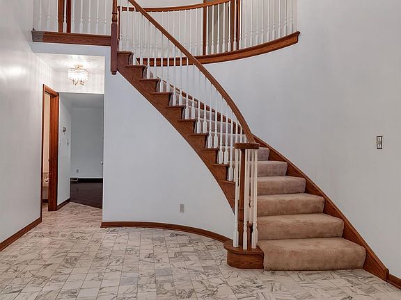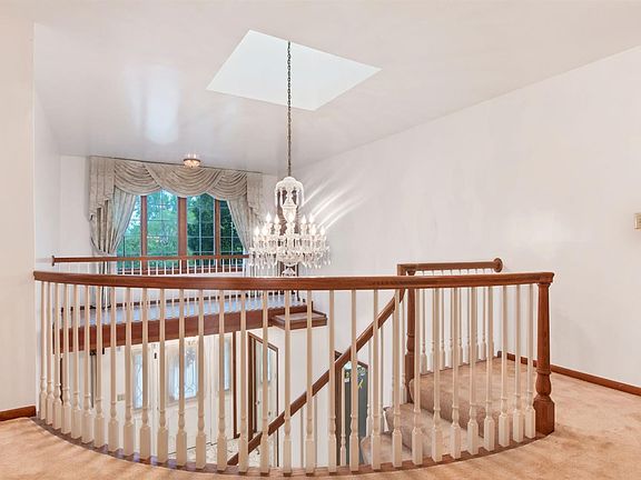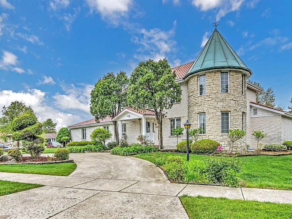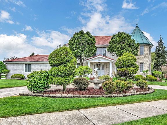This stately and quality built 2 story offers 5214 finished SF, & is perfect for entertaining. The grand foyer has marble flooring & a sweeping staircase. Beautiful parquet wood flooring in the formal living room, informal living room, dining room, & master bedroom. A brick circular fireplace separates the formal & informal living areas. Huge master suite with walk in closet, full bath with tub & separate shower, along with plenty of windows for natural light. Dramatic upstairs landing overlooks foyer area. Basement is set up for entertaining with its wet bar, table or game area, & rec room area with brick circular fireplace. There is a non conforming bedroom downstairs (has a window, but not egress), & a full bath. New laminate wood flooring in entire basement (also in the HUGE unfinished storage area). Spacious rooms. Circular driveway, & an additional side drive. Irrigation System. Extensive landscaping, including a patio area & gazebo. Tile roof. Dual HVAC system.