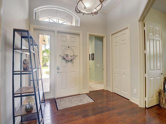 Beautiful Atlantic Grand model with a gorgeous lake view! One story 3 bedroom / 2 1/2 baths . Very open floor plan, wood floors throughout living areas,, newer carpeting in bedrooms. Lovely kitchen featuring SS appliances. Refrigerator and dishwasher are less then a year old. Tumbled marble back splash, granite counters . Gorgeous extended patio with retractable shades/screens. Upgraded landscaping, accordion shutters, built in fireplace and so much more. Very active 55+ community with great clubhouse , social director, tennis courts, pickle ball, bocce ball , shuffle board, basketball, gym, resort style pool, lap pool, resistance pool, hot tub, cafe , shows and something for everyone! A fabulous and fun lifestyle community!!!!