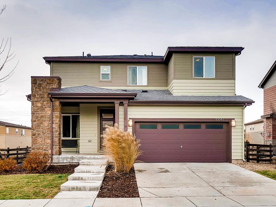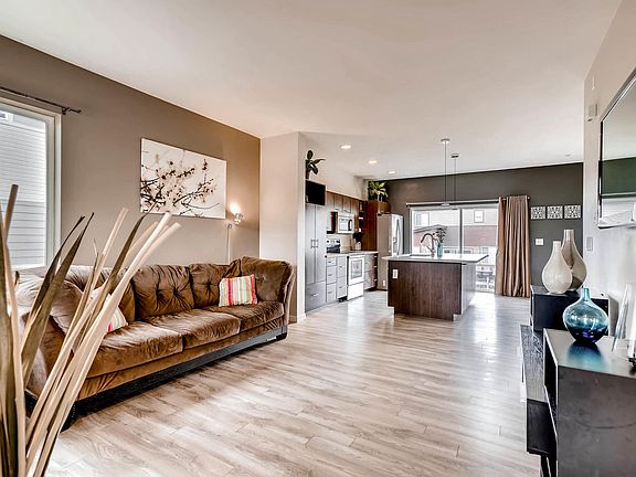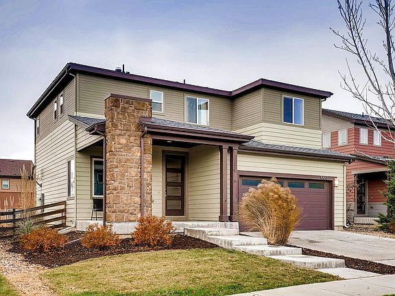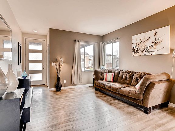 This is the one you've been waiting for! Home features: Large open kitchen with SS appliances and large island, modern finishes. Kitchen positioned perfectly next to the back patio making for a perfect space for entertaining and outdoor living. The 3 bedrooms are located upstairs, along with an open loft for additional living space, office or play area. Laundry is also conveniently located on the upper level. The Large primary is complete with a walk-in closet and modern bathroom. Lots of storage and potential for growth in the usable, unfinished basement. Newer lighting and paint thru-out, Includes water softener, and brand new 50 gallon water heater. This family community has a rec center and pools to enjoy in addition to easy access to parks, walking trails, and open space. Commuters dream, close to DIA, with easy access to I-76and E-470.