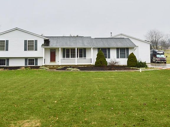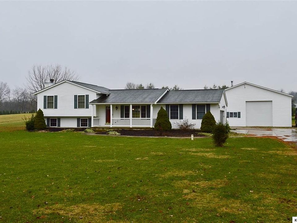 Awesome 4-Level Split Home situated on 1.397 acres providing gorgeous country views! Cabinet filled kitchen with major appliances conveying, adjoining dining room that with glass sliders to concrete back patio and fenced back yard! 4 bedrooms and 2 1/2 baths, spacious main level living room as well as a large lower level family room that is highlighted by a gorgeous traditional wood burning fireplace! Sectioned off area in lowest level that could easily be finished off for more living space or would be perfect for extra storage! Vinyl sided exterior, 2 car attached garage, adjoining concreted area - Perfect for extra parking! PLUS a 40x40 Pole Building with concrete flooring, electric, and water! This home is a MUST SEE!