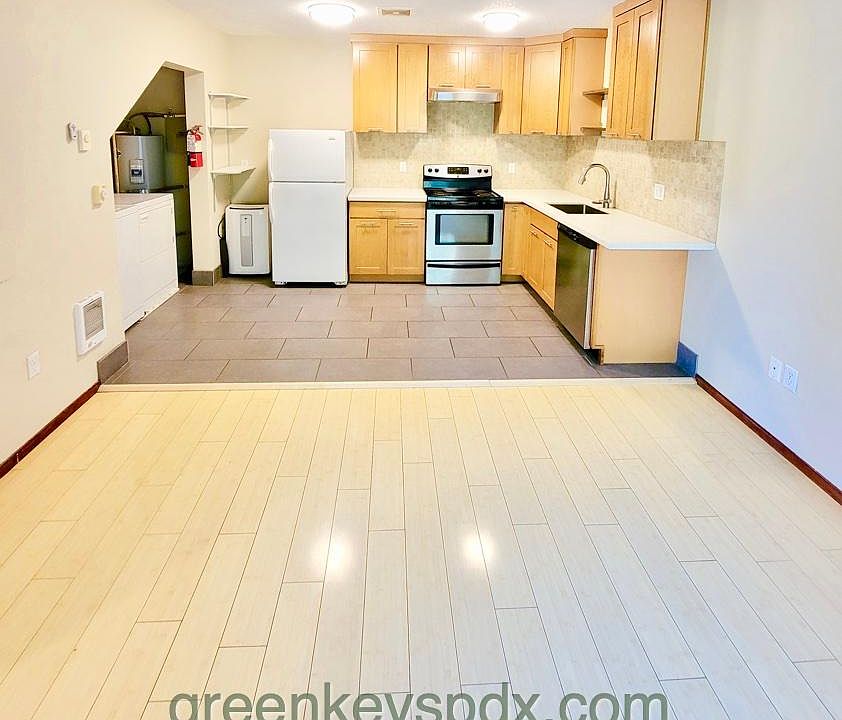 Awesome 2-story loft-style one-bedroom unit with 1 full bathroom and a designated parking spot. This unit features: * Stainless steel electric range, dishwasher, refrigerator and new quartz counter tops. * Unit is part of 5-plex * Hardwood floors on first floor and carpet upstairs. * Washer/ Dryer in Unit * View of trees from nearly every window * Off-street parking in the complex parking lot * Located in the St. Johns neighborhood Utilities: Owner pays for garbage and landscaping. Tenants pay electricity, Internet, and their fair share of the building's water-sewer bill. This property is managed by Green Keys Property Management LLC. Application fee: $45 per adult Move-in Costs: First month's rent plus a refundable security deposit that is $40 to $60 less than rent Lease: 12 months No Smoking. Pet policy: Up to 2 pets allowed with owner approval and $30 pet rent per pet. Must complete a pet profile at Petscreening.com at time of application. Green Keys Restricted Breeds: Pit bulls (American Pit Bull Terrier, American Staffordshire Terrier, Staffordshire Terrier, and American Bulldog); German Shepherds; Akitas; Rottweilers; Boxers; Doberman Pinschers; Mastiff Breed; Malamutes. When full grown, any dog should not be more than 55 pounds. We are looking for applicants who can start a lease sooner rather than later. Steps to take if you are interested: 1. Take the video tour by going to the Green Keys PDX website, clicking on Our Listings. Look for the blue Video Tour button below the address 10044 N Lombard st. 2. Contact us to arrange an in-person tour. 3. Apply online at the Green Keys PDX website by clicking on the For Renters tab. The application period is open. Lease: 12 months; renewable if rent is paid on time.