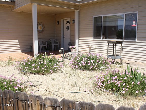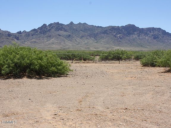 This is a 3 bedroom, 2 bath home with beautiful views of the Florida Mountains. The home is a Kodiak Steel home with steel lap siding and a metal roof. It has a glassed in patio area is that is heated and cooled and includes a Murphey bed. It can be used as a fourth bedroom. Home is heated by efficient radiant heat in the floors with 3 zones. Designed to run with solar panels and propane backup reducing the distribution of allergens for individuals with allergies. Built in whole house humidifier. House wrapped in R8 double foil insulation. 6' insulation bats in the walls.Tractor and equipment convey with the property. 21x30 workshop, Sunken garden area with automatic watering facilities and exhaust fan, well and pressure tank, storage barn, fenced in garden area with automatic drip watering system. Property includes solar panels to supplement electrical power and solar heating panels for the radiant heat in the floors. Washer, dryer, refrigerator and upright freezer will also convey