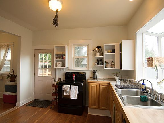 Welcome to the Gateway to Nature in lovely St. John's! This home is a turn of the century bungalow; 2 bedroom, 2 bath with one non-conforming 3rd room in the basement. It features hardwood floors, lots of natural light, built-in bookshelves, high ceilings, and highlights the original trim and moulding. Entryway leads to adjoining living and dining space with south facing windows, bedrooms are tucked to the side. The main living area leads back to the kitchen and breakfast nook. From the kitchen, a back door takes you to the newly finished deck and backyard. The backyard is a gardener's paradise. Outfitted with garden shed and storage there are three raised beds, established blueberries, strawberries and raspberries (front yard). Three other beds hold native plants under the care of a giant Cherry and Cedar tree. Fully wood chipped yard means no grass to mow and perennial flowers come back each year! Home is situated at the end of a dead end street, with minimal traffic and noise. It s walking distance to downtown St. John s bars, restaurants, schools, library and fantastic Pier Park and Cathedral Park. Just a scoot to Forest Park and beyond! Amenities include: dishwasher, heat/AC, washer/dryer, utility sink, storage/workbench in basement, ceiling fan, street parking. Rent is $2200. First + deposit to move in. Garbage is included, other utilities not included. No smoking. No pets. One year lease with option to renew. We really love our home and we re looking for people who will continue to care for it with heart and intention. We work hard to make it a peaceful, beautiful place and hope it can be that for others as well. Landlords pay garbage, other utilities covered by tenant