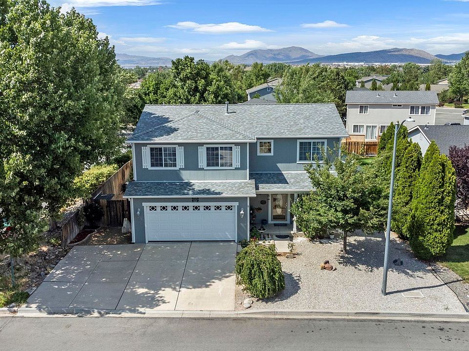 Welcome to this well-maintained corner lot home, where pride of ownership shines throughout. With numerous updates in recent years, including the roof, flooring, exterior and interior paint, water heater, and AC, this home is ready for you to move in. Featuring three bedrooms and a large loft or bonus room, there’s ample space for everyone. The loft offers versatile space that could be ideal for an entertainment area, office, gym, or more., The owner’s suite includes a generous walk-in closet and a full bathroom, providing plenty of storage and comfort. Downstairs features updated flooring, adding to the home’s fresh and inviting atmosphere. The kitchen is equipped with updated appliances and a breakfast bar, perfect for casual dining. Just off the kitchen, there is a designated area for a dining table, making mealtime convenient. Step outside to discover a gardener’s dream in the expansive backyard, highlighted by a large gazebo perfect for relaxation and entertaining. The home also features leaf guard gutters and a handy shed for additional storage. Conveniently located close to walking trails, North Valleys Regional Park, and more, this home combines updates and outdoor bliss in one package. Don’t miss the chance to make it yours!