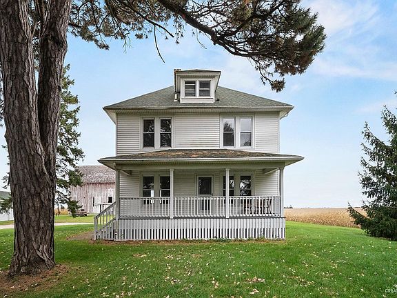 Seeing is believing! Sitting on 5 acres Ag zoned. This American Foursquare home has been lovingly maintained- truly move in ready. Privacy, Views, Room to Roam- All boxes Check! The Oversized front porch faces west- perfect for sunsets. The first thing you will notice is the gleaming hardwood floors throughout the entire home then the stunning crown molding, oversized colonist trim, 6 panels doors, 9 foot ceilings on first floor, freshly neutral paint throughout, & new lighting. Newer windows throughout flood the home with light! Generous sized living room, formal dining room opens to the kitchen boasting tons of upgraded Oak cabinets, new countertops, faucet, and ss appliances with adjacent breakfast room. Freshly updated Half bath PLUS Den/Home Office/ 5th Bedroom complete 1st Floor. The 2nd floor offers 4 bedrooms with great closet space, gorgeous original hardwood floors and updated full bath. Another set of stairs leads to unfinished walk up attic just waiting for your ideas. Full unfinished basement w/ laundry and 2nd refrigerator is great additional space. The back concrete patio leads to the backyard, with basketball area, 10 car garage with roll up doors, Large Sheep/Pig Barn w/ great drive thru plus roll up doors on both ends. Corn crib offers drive through with roll up doors on both ends. As-is barn in rear of property great for barn wood projects or a fixer upper project. 200 amp service, Home has maintenance free vinyl siding- Roof on house and 2 buildings completed in 2009. The property goes all the way to the corner of Duffy and Crego Rd. 3 acres of the 5 acre lot is currently farmed- easily converted back- no lease. 1/4 mile off Rte 30. Indian Creek School District! Come enjoy the country but still be within 15 minutes to shopping & restaurants!