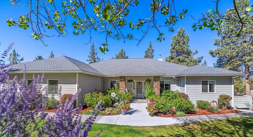 Lovely one level 2329 sq ft home at the Running Y Ranch built by Dennis Shelton! Located on a cul-de-sac, over 1/2 acre. Boasting 3 bedrooms (two primary suites), 3 bathrooms with double vanities, three showers and two tubs, an oversized 3 car garage, plus an office and dining room. New features include GAF 50-year composite roof (2023) along with solar panels (owned by owner) for economic energy, under $20./month electric bill. Epoxy floor in garage is a newer addition for easy of cleaning. Natural gas features include heat, gas fireplace with stacked stone, water heater, and kitchen cook top. The newer kitchen stainless steel appliances include a warming/bread proofing drawer. Special features: granite counters in laundry room, with granite counters and under counter lighting. The landscaping is a neighbor showstopper. Level driveway and extra parking - huge TREX deck.