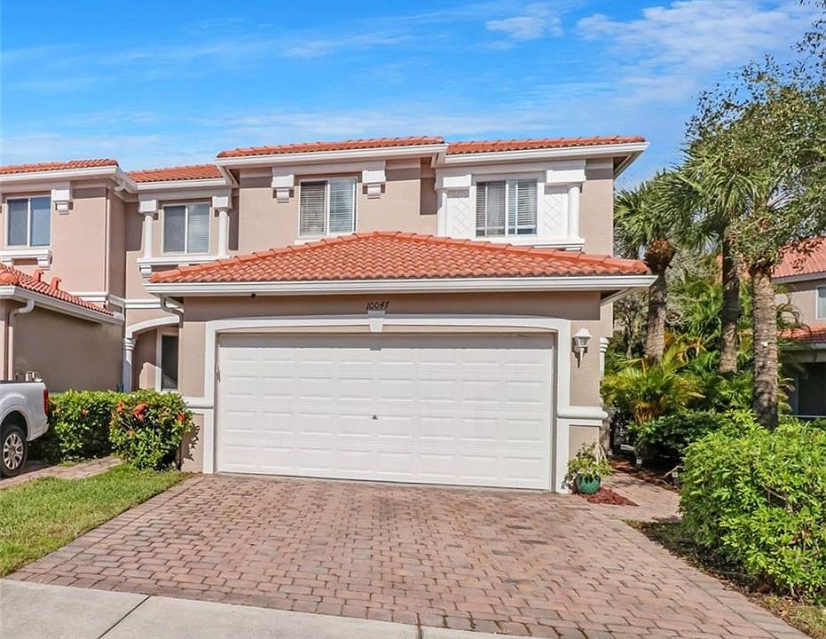Tasteful townhouse in Colonade at the Forum: Inviting and bright 2 story home offers 3 bedrooms plus loft/den and 2 and a half baths. This home is an end unit that offers maximum sunlight and a two car garage. The kitchen offers granite countertops, stainless steel appliances an island with breakfast bar seating. There is also a formal dining area and open living space. Laundry room and half/guest bathroom also on main level as well as access to screened in lanai. Owner suite, loft and guest bedrooms are upstairs and both baths have been updated with tile and gorgeous granite! Enjoy a view of the lake from the upstairs loft which can be used as a den, office or flex room. The gated community of Colonnade offers valuable amenities including pool, clubhouse, basketball, tennis court, fitness room and playground. Great location just a mile from 75 and a short seven miles from Fort Myers International Airport and 18 miles to Fort Myers Beach call for your private tour today!