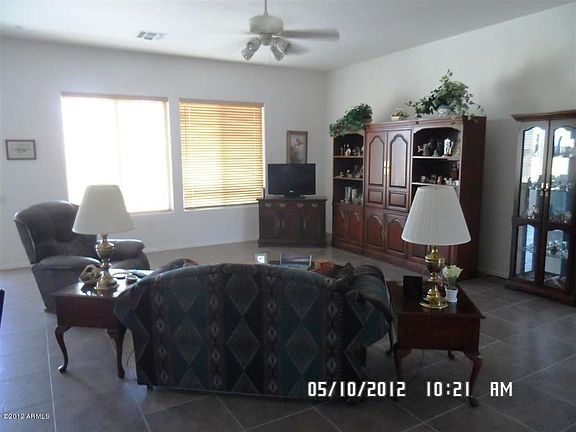Gorgeous upgraded 2227 Sq. Ft Pulte on oversize, very private lot. Tile throughout the home. Open floor plan with large Great Room. Huge kitchen with 42' upgraded Cherry cabinets with pull out shelving, extra-large island with seating, large formal dining and breakfast area. Extended covered patio with gas grill and fabulous views of the total Superstition Mtns range. Offered at $230,000