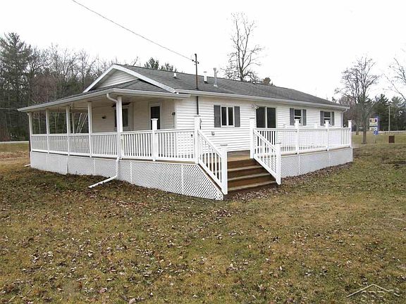 Three bedroom ranch in excellent condition, loads of updates. Over 1,100 square feet of living space with a huge wrap around porch that is mostly covered. This home is outside of the village on a large lot but yet with natural gas and city water! Updates include septic system, bathroom, kitchen, bedroom flooring, fresh paint, electrical fixtures and lights. Includes kitchen appliances, central air, cable TV, natural gas, city water and a storage shed.