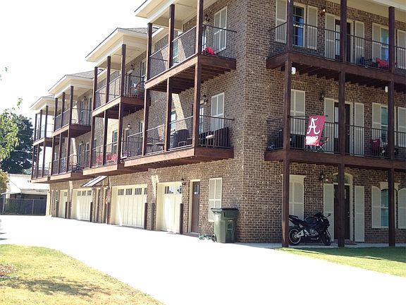 4BR/4BA townhouse. Private garage on first level. Bedroom and full bath on first level as well. The second floor living room, kitchen, and dining area are spacious and open. One bedroom and full bathroom are also on the second floor. The third floor has the final two bedrooms, each with a full bath and HUGE walk-in closets. A linen closet and a small nook, perfect for a desk or lounge chair, is also located on the third floor. FOUR balconies!! Two of the balconies are on the 13th St side of the building and facing Bryant-Denny!