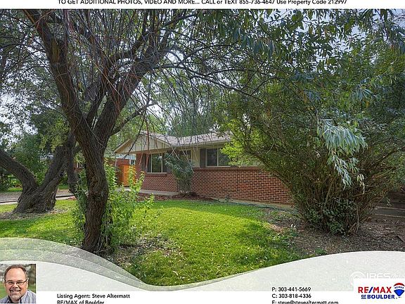 Expanded ranch with a creek that runs through the backyard in Boulder's centrally located Baseline/Aurora 7 neighborhood! Close to CU, bike trails and a bus line this well maintained, Smart Regs compliant ranch with current rental license has a large family room addition off the back of the house! Beautiful hardwood floors, double pane windows, insulated walls, and a new water heater. Open your bedroom windows and enjoy the babbling sounds of Skunk Creek running through the backyard or built a patio overlooking the creek. The property goes to the other side of Skunk Creek to the 2nd fence line.