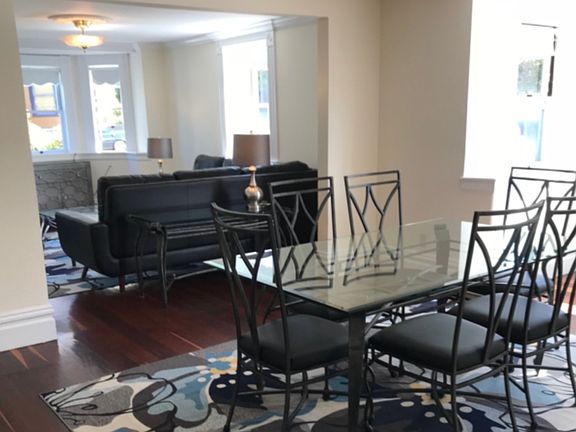 1887 Victorian Historical Landmark. Beautiful 4br/2ba street level, fully furnished flat of Eastlake style Victorian duplex on gorgeous Beach Hill. Approximately 1900 square feet of space. Multiple hand blown original glass bay windows, very bright and cheery. Beautifully refinished original redwood floors with lovely trim details, doors, original hardware etc. See it on the cover of "The Sidewalk Companion to Santa Cruz Architecture" at the book section of the MAH (The Museum of Art & History). The space has a large living room, dining room, big kitchen, three large bedrooms and one smaller bedroom. One of the bathrooms has period black and white tile and has a shower. The other full bath has a bathtub/shower. The home is ideally located at the top of Beach Hill, with a very short block and a half walk to the beach/wharf or five minutes to downtown. Includes a shared (with the upper unit) laundry room with a newer (free not coin op) washer and dryer. Gardener included. The home is fully furnished to sleep five, and includes living room, dining room and bedroom furniture. One of the bedrooms has a full bed, one bedroom has a queen, one has one twin, and the other has two twin beds. Parking is street parking. The area goes to permit parking for residents in summer. Parking passes were $25 for the entire season last year. Sorry, but we absolutely do not allow any sort of pets or smoking on the premises (inside or outside). No parties. Rent is $6,650 per month. $6,650 security deposit. Located at 1005B (lower level flat) 3rd Street (at Main), Santa Crux, CA 95060.