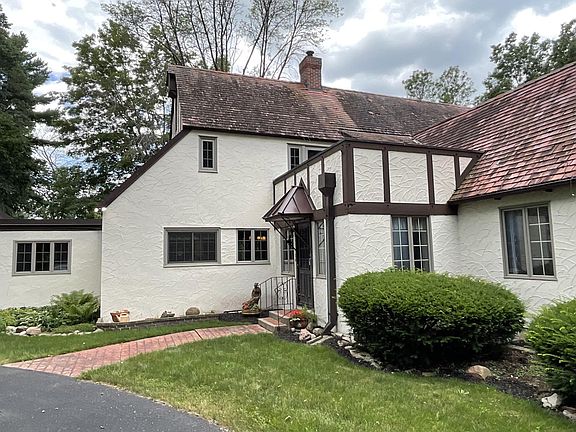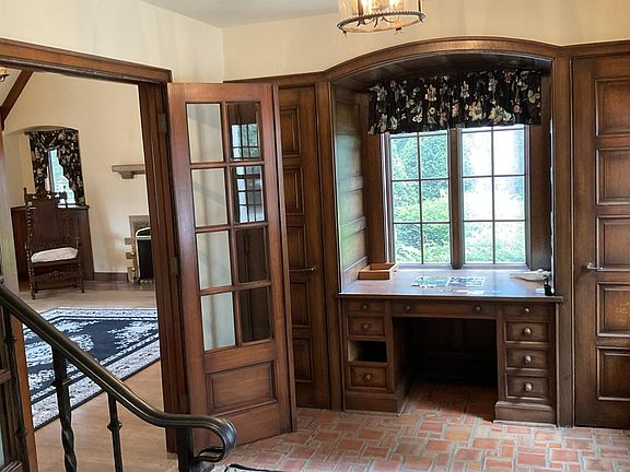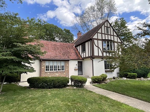 Stately, elegant 3BR 3-bath English Tudor home nestled into one acre+ lot in great SW location close to parks. This magnificent, charming, home boasts hardwood floors, all natural woodwork, beveled glass, open stairwell and lovely balcony. Has spectacular living room with cathedral ceiling, large formal dining room, eat in kitchen, main floor and lower level family rooms, two fireplaces, numerous built ins throughout, primary bedroom suite, game room and excellent storage areas. Enjoy the wooded lot with multiple gardens from either your composite deck or the patio. Includes all appliances, two new furnaces, central air, permanent siding newer roof, circular drive to attached double garage and two storage sheds. A grand, one-of-a-kind home, on a one-of-a-kind lot in a one-of-a-kind neighborhood.