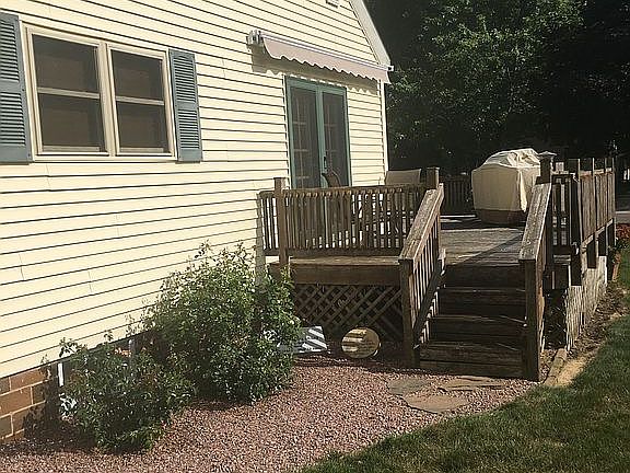 Cape cod home with spacious living room addition, formal dining space, galley kitchen with updated cabinets, recycle bins, utensil sliding organizer and other special features. Walk in closets in the main floor bedrooms, full bath with whirlpool tub and 3/4 bath on main floor. Full, unfinished bsmt with half bath. Upstairs includes the 4th bedroom and loft area for additional family room, office or hobby area. Decks outside for lounging and a nice rocked area for a firepit.