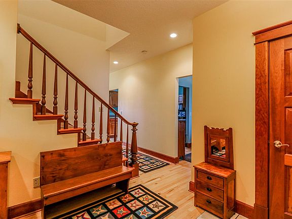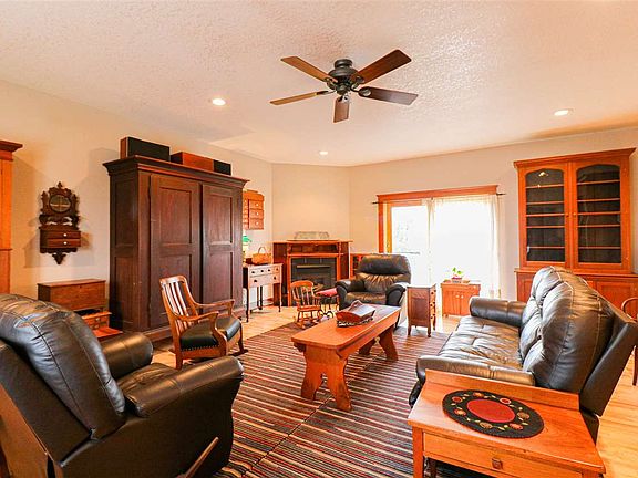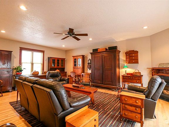 Quite possibly the most beautiful sunsets in the entire town! This 1998 two story features many amenities reflective of an 1880 farm house. With over 2,566 finished square feet, the utilities of this home remain affordable. All the trim and interior doors are custom and consist of cherry, walnut and maple. Features include: large functional kitchen with cherry kitchen cupboards and breakfast nook with unique circle window. Other main floor features; 9' ceilings, beautiful hard wood floors throughout.