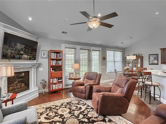 Enjoy low-maintenance, one-level living located right by the scenic, Shadow Lakes Golf Course! This property is adorned with luxurious elements such as crown molding, wainscoting, hardwood floors, and marble countertops. Enter into the open living and dining area with a cozy, gas fireplace that is easy to use. Enjoy nice summer days on the covered patio. Enjoy the view of the woods that make the backyard very private. If you enjoy cooking, you'll love the luxurious, spacious kitchen with high-end finishes and a work triangle. The island is perfect for entertaining. The spacious master bedroom features vaulted ceilings, a large master bathroom with a tiled shower, and a walk-in closet. This house features a lot of storage so you can keep your home organized. The two extra bedrooms allow extra space for guests or a home office. The sellers re-finished the wood floors and installed an air filtration system during their ownership. Make this opportunity for low-maintenance living yours!