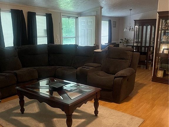 Ready to Move Into is This 1993 double wide mobile home permanently affixed to the land with 1,680 sq. ft. of living space, 3 bedrooms, 2 full baths, living room, spacious eat-in kitchen with appliances, laundry room with washer & dryer, formal dining room, primary bedroom with en-suite full bath, fenced in yard, storage building, with a nice front porch for relaxing. Hurry this one will not last!