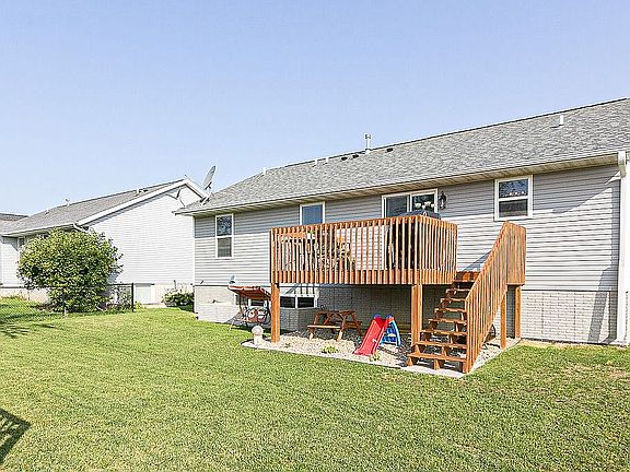 This beautiful ranch is located in a family-friendly neighborhood, close to Playgrounds, walking/biking trails and restaurants. The main level has carpet and tile floors and vaulted ceiling. Also on the main level are 3 bedrooms, 2 full baths and laundry. The kitchen features tile floors, granite counters, tiled backsplash and stainless steel appliances. Appliances stay with the home. The master bedroom is located on the main level and features carpet floors and conventional ceiling. The attached master bath includes tile floors, quartz counters and tiled shower. The unfinished lower level provides room for future expansion. Outside you'll find a treated wood deck overlooking the yard. Exterior features include a kids playset. Call or email today for a private showing.