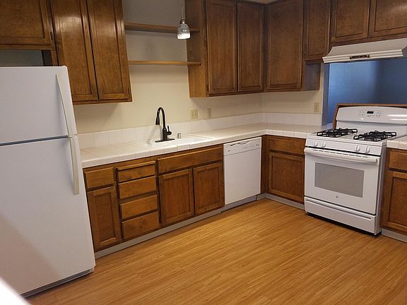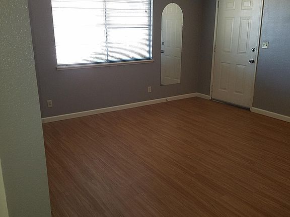 This 2 bedroom, 1 bath apartment has no shared walls! Ground level with no upstairs neighbors. Attached garage door with opener. new carpets. covered patio in private back yard. Refrigerator, stove, dishwasher and disposer included and Washer/dryer hookups are in the garage. Trash is included. Evaporative cooler; and gas stove, water heater and furnace keep bills low. Decor has wood plank flooring and gray/blue walls. no pets.