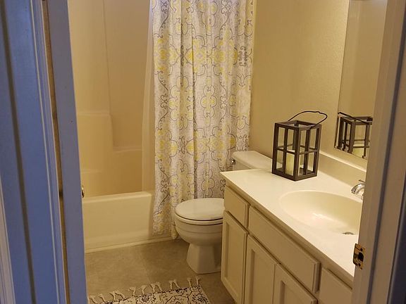 This upstairs unit features an open design and new carpet throughout! Apartment comes with a large, covered front porch, 1-car garage with door opener, an off-street parking space, and small, private back yard. Appliances, trash, and landscaping are included. Decor is neutral with coffee carpet and Navajo white paint. Evaporative air conditioner/heater service included, and bug spraying twice per year. Washer/dryer hookups in garage. No pets. Applicant must have a credit score of 650.