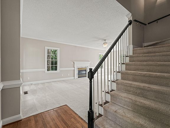 Charming 4-bedroom, 2.5-bath home situated on a peaceful corner lot with mature trees. Fresh landscaping enhances curb appeal, while brand-new interior paint gives this home a crisp, updated feel. Step into the welcoming entryway that opens into a spacious living room with a cozy fireplace. The open-concept layout allows natural light to flow through the living, dining, and kitchen areas, creating a warm and cohesive space for everyday living. The kitchen is equipped with stainless steel appliances, granite countertops, and a center island. Upstairs, the generous owner's suite features a spa-like ensuite bath with dual sinks, walk-in shower, and soaking tub. Three additional bedrooms and a full bath offer flexibility for family, guests, or office space. Step out to the deck and fenced backyard, perfect for relaxing or entertaining. The walk-in attic and two-car attached garage provide plenty of storage space. Located in a desirable neighborhood, walkable to library and nature trails, with easy access to Raleigh and I-540.
