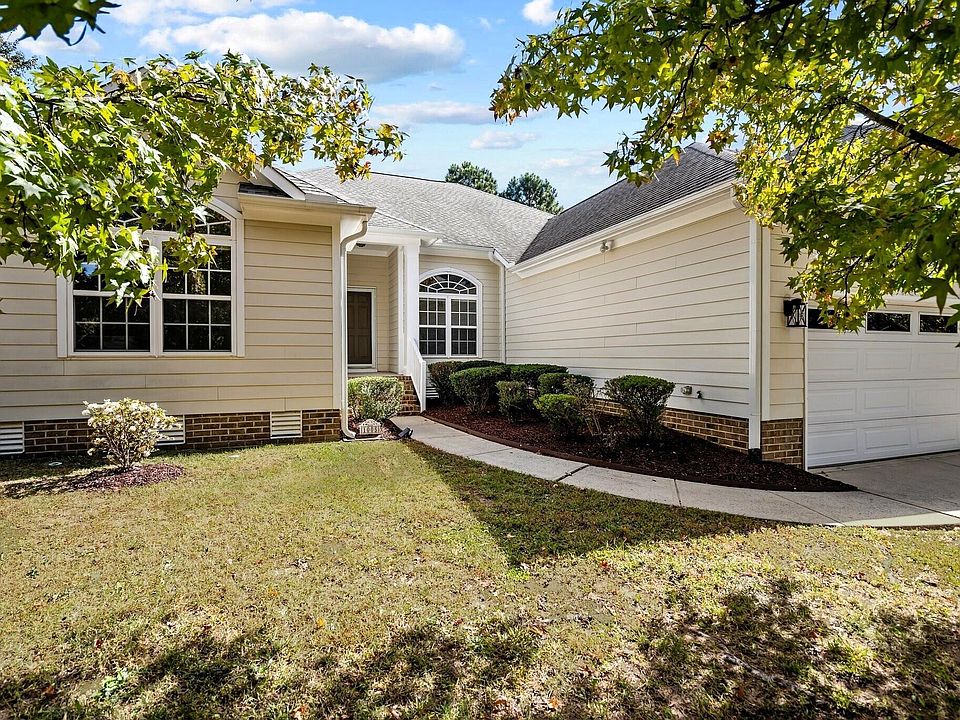 This charming Ranch-style home is conveniently located less than 1 mile to the Streets at Southpoint Mall offering numerous shopping and dining options! This allergy-friendly home ensures a fresh, clean environment with state-of-the-art air system that purifies the air and reduces allergens. Solid Red Oak Hardwood floors throughout enhance both aesthetics and air quality! The kitchen offers natural stained raised panel cabinetry with brushed nickel pulls and crown molding, as well as tile backsplash. The center island is perfect for food prep, and there is a large breakfast bar for barstool seating. The stainless steel Samsung gas range/oven makes cooking a breeze and a side by side stainless steel refrigerator is included. The family room, dining room, kitchen and breakfast are open to one another making it a great gathering place for friends and family. The spacious primary retreat features 3 windows for added natural light, hardwood flooring, crown molding, and a ceiling fan. It adjoins an en-suite bath offering tile floors, a dual vanity with make-up area, brushed nickel faucets and light fixtures, recessed lighting, a ceiling fan, a jetted soaking tub and separate shower with tile surround, as well as a huge walk-in closet with solid red oak hardwood floors! Dec 2023: New TRANE furnace and AC with transferable warranty, installed by Carolina Comfort Air. The HVAC system includes an APRILAIRE whole-house anti-allergy air filter and dehumidifier, paired with hardwood floors throughout—ideal for anyone with allergies. The laundry room doubles as a mud room and features storage cabinets. The built-in shelf with coat hooks makes a great place to drop your coat, bookbag or purse, etc. The screened porch is off of the breakfast nook is a serene retreat and the adjacent deck is perfect for outdoor grilling and entertaining. You'll find there's ample storage space in this home with space in the attic and in the 2-car garage with all it's built-in shelving. Aging-in-place is possible with this open floor plan, that already includes some handicap features such as grab bars. Don't let this opportunity pass you by. Make an appointment to see this beautiful home today!