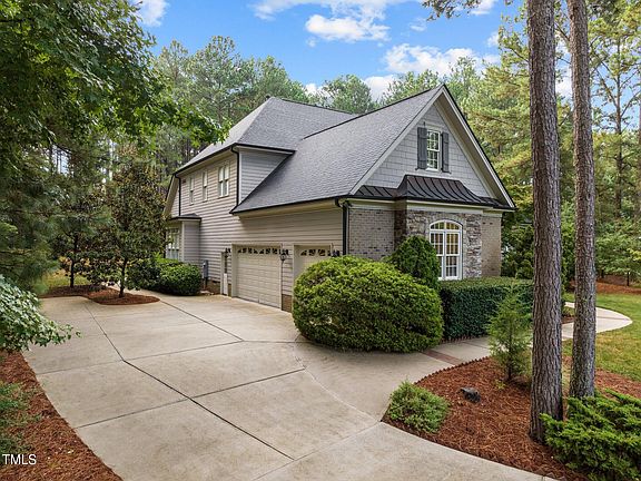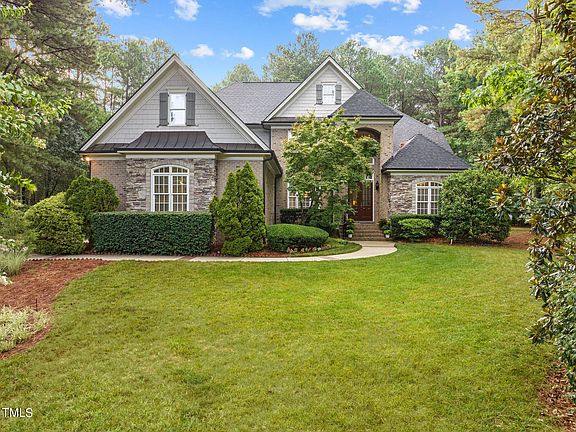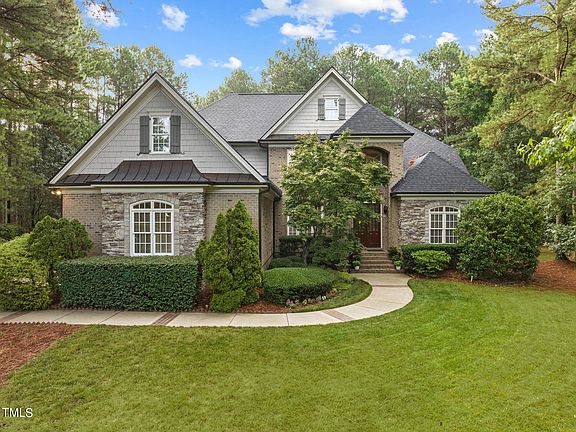 Situated on a private cul de sac lot within the prestigious Galloway subdivision, this move-in ready estate is luxury living at its finest near the heart of Wake Forest. The main level of this immaculately maintained home features ample space including an eat in kitchen, living and family rooms, a formal dining room, and an office. The first floor primary suite shines with tray ceilings, whirlpool tub, an oversized walk-in closet, and porch access. Cathedral ceilings, crown moldings, two fireplaces, hardwoods, and beautiful wainscoting add a touch of elegance. Upstairs you'll find the secondary bedrooms with en suites, a charming bonus room with an additional flex room, and ample storage including walk-ins and a walk-up attic. Enjoy the peace and privacy of nearly an acre of gorgeous landscaping and greenery from the comfort of the large screened-in porch, deck, or covered patio. The enhanced three car garage provides a separated space perfect for a workshop with upgraded electrical, windows, and ceiling fan. Roof replaced and upgraded 2022. Your forever home in one of Wake Forest's most sought after neighborhoods awaits, schedule your tour today!