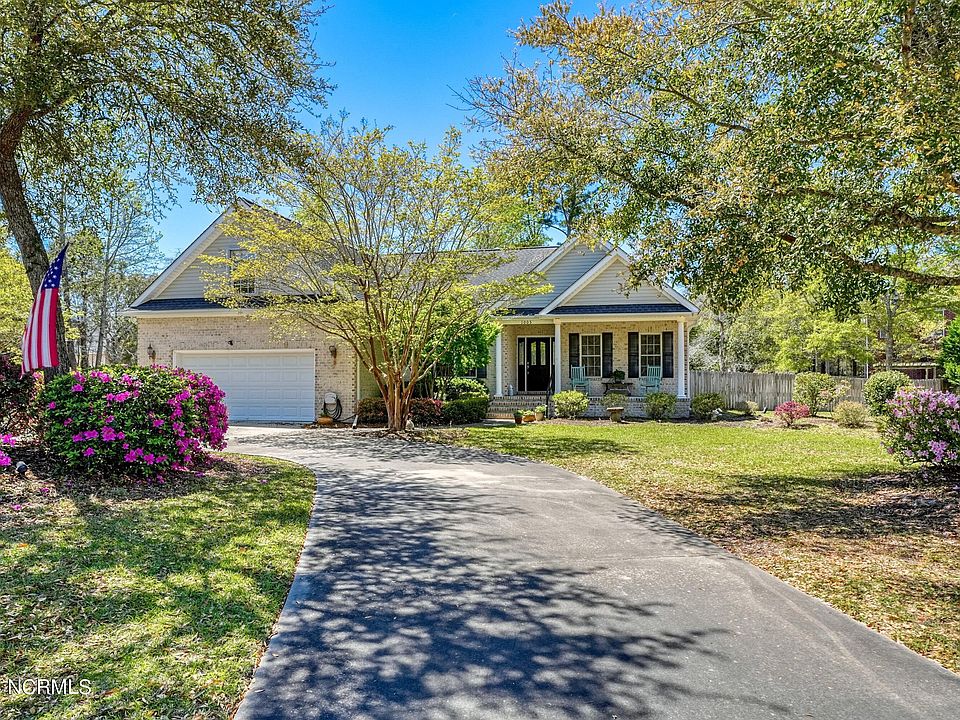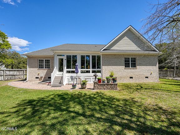 Motivated sellers. Bring offer. Golf cart downtown from this immaculate gem nestled in the serene and prestigious Smithville Woods neighborhood of historic Southport. This home offers an unparallelled blend of elegance, comfort, and the idyllic coastal lifestyle over its sprawling 2571 sq ft of living space. Step into luxury with three generously sized bedrooms and three modern bathrooms, + a FROG designed to facilitate a seamless flow of living. The architectural marvel of high tray ceilings across the home captures the essence of space and light, creating an inviting atmosphere that extends from the sunlit dining alcove, with ample space for a large gathering, to the tranquil sunroom. Here, the panoramic views of the lush outdoors provide a peaceful backdrop for relaxation or entertainment, enhanced by the convenience of ceiling fans and expansive windows with sliders to invite the beauty of nature into your home. The heart of the home, a sunny kitchen, boasts stainless appliances, a newly installed stove, and dual sinks equipped with a reverse osmosis filtration system, overlooking a dedicated laundry room for optimal functionality. The en-suite master bedroom, a sanctuary of its own, features a spacious walk-in closet and a luxurious soaking tub in the bathroom, complemented by two additional sunny bedrooms offering privacy and comfort. The property's exterior is as impressive as its interior, with a circular driveway, ample parking, and a spacious two-car garage. The large, shaded, fenced yard, with an outdoor heated shower, stone patio, and two storage sheds, offers endless possibilities for outdoor enjoyment and gardening. Situated in a community known for its historic charm and scenic views, this home provides quick access to pristine beaches, local dining, and cultural landmarks, ensuring a lifestyle filled with exploration and discovery. Experience the joy of coastal living in a community that welcomes you with open arms.