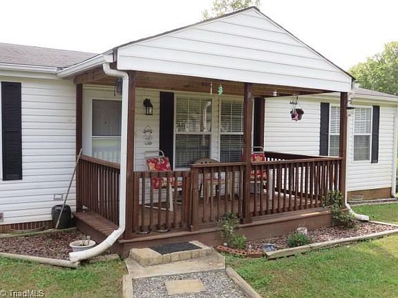 WHAT A FIND! This is a SUPER CUTE home in nice area. Check out the schools! New laminate flooring! Great open floor plan. This home was a display unit per seller, and certainly has many upgrades! Crown molding, plantation blinds, super nice cabinets with deep pot drawers and corner lazy-susans in top and bottom cabinets, tilt windows. Just tons of appeal! A large yard, with stroage buildings and a cover porch complete the setting. Newer heat pump. Country living just minutes from Hwy 52!