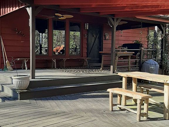 • Exterior: Porch, Wooded Lot, Private Location, Deck, Pond, Out Buildings Workshop