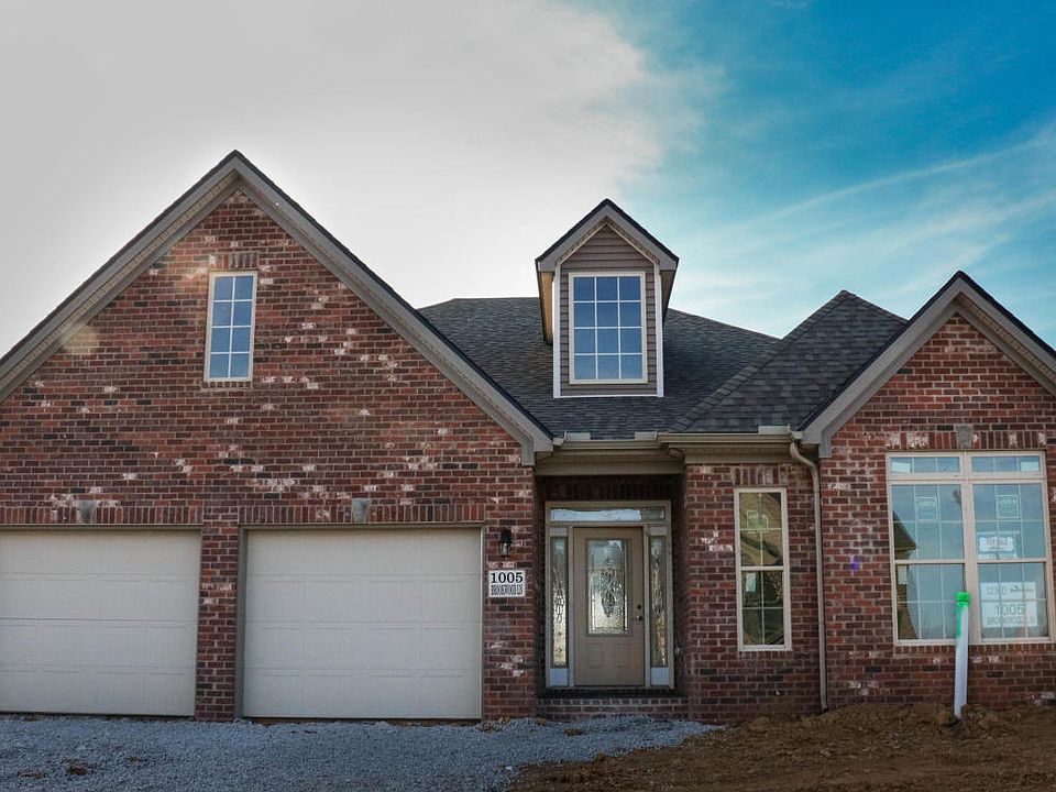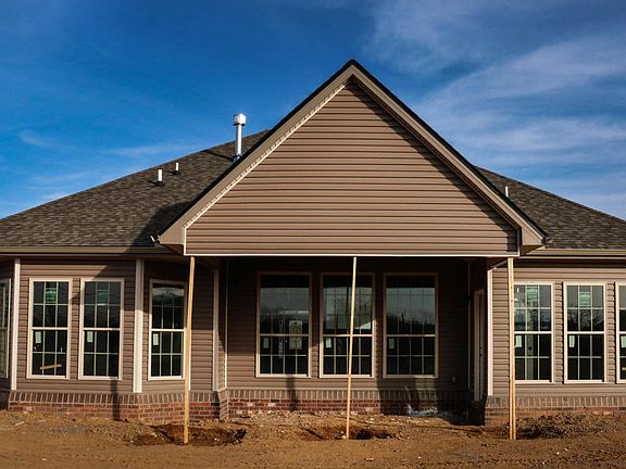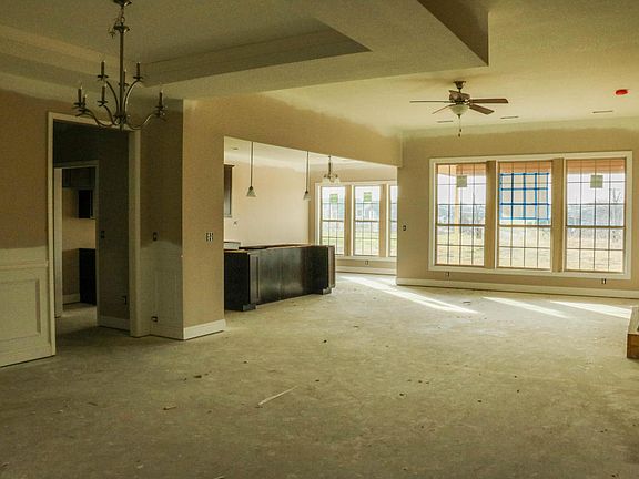 The Fitzgerald floor plan is one level living at its best! The home features an open layout with 10 ft ceilings throughout the foyer and family room. The kitchen wing of the home has a breakfast nook, breakfast bar, abundant cabinetry, granite countertops, pantry, butler's pantry open to the dining room, as well as a mudroom with built in drop zone and laundry area. The master suite features bedroom with double trey ceiling, a large bay window, luxury bath with drop in garden tub and fully tiled shower, and spacious closet.Bedroom 2 has 9' ceilings, and Bedroom 3 has vaulted ceilings, a feature window, and a plant shelf.The plan's exterior features include hip roof lines, decorative dormer, transoms around the entry door, a covered entry, separate garage doors, and a large covered patio.