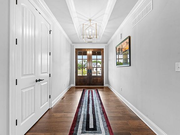 Truly a rare opportunity, this beautifully crafted ranch sits on a picturesque 1 acre lot, surrounded by peaceful countryside. This 3 bedroom, 2.5-bath home showcases top-tier craftsmanship and high-end upgrades throughout. You step into the expansive foyer and you're greeted by a warm, open layout highlighted by rustic wood beams, a cozy gas fireplace with custom built-ins, and panoramic sliding glass doors that flood the area with natural light. The kitchen is a chef's dream featuring a sleek induction cooktop, microwave drawer, rich leathered granite countertops, and oversized island perfect for entertaining. The split-bedroom design offers privacy for a luxurious primary suite boasting a freestanding tub, tiled walk-in shower, double vanity, and a walk-in closet. Step outside to your screened-in covered patio, the ultimate place to enjoy the tranquil surroundings. Need garage space? This home features a huge 2.5-car side entry garage with over 830 square feet- nearly double the size of a standard garage. With timeless quality, thoughtful design, and a peaceful setting that's still close to conveniences, this home offers a lifestyle that's hard to find and impossible to forget.