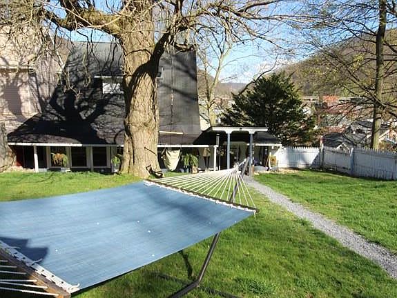Spacious 2 bedroom, 1 bathroom home in Tyrone on a large, fenced double lot. Detached 1 car garage with carport and second floor storage. Off street parking. Outside bar area is great for entertaining. Nice size kitchen with bar and room for eat-in area. Newer appliances. Pantry. New electric and windows through most of the house. Large dining room and living room with high ceilings and hardwood floors. Gas fireplace. Enclosed sun room. Large laundry area in basement. Additional area in basement could be finished. Nice size master bedroom with double walk-in closets. 2nd bedroom also has a walk-in closet.