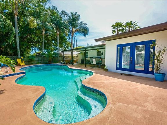 Clearwater Charmer with NO FLOOD INSURANCE REQUIRED! Welcome home to this beautiful 3br/2ba/2cg + POOL home located in the sought out after Plumb/Oak Grove/ Clearwater school district. With 1,660SF, this home has EVERYTHING and more. Upon entering, you will notice how open and functional the floor plan is. Modern tile flooring flows throughout the main living room, dining area, and kitchen. You will marvel at the newer STAINLESS STEEL APPLIANCES in the cozy galley kitchen. The bedrooms are both large and have ample closet space not normally found in a home this size. The two full bathrooms are FABULOUS with the perfect blend of modern convenience and mid century Florida charm. The home also has a great bonus area that can be used as anything from a family room to an office, flexible to fit your needs. Out back, enjoy the entertaining space of the COVERED LANAI and take a dip in the beautiful IN-GROUND POOL. Other bonuses include: two car garage, new paint, newer water heater, newer garage doors, fenced in backyard, quick access to dining, shopping, Clearwater beaches, and MORE!