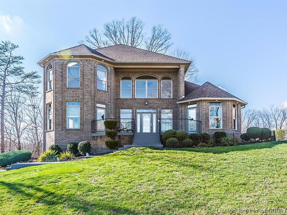 WELCOME HOME - Nestled in the hills of Southern Indiana is the small gated community of CANYONLANDS. This gorgeous executive home boasts 4 bedrooms, 3.5 baths - 2 Masters both with heated spas and marble flooring. The spacious kitchen offers granite counters and island. Appliances to stay, including an induction stove. The breathtaking views of the Louisville Skyline and tree canopy surround you! VIEWS FROM EVERY ROOM! The back overlooks woods teaming with wildlife. The front deck overlooks the city and valley below. The finished lower level could be converted to an apartment, or keep it as a man cave. Epoxy flooring in oversized 2 car garage. This energy efficient home has 2 furnaces, 2 A/C units, and 2 GE Geospring Hybrid water heaters. Home inspection and radon testing completed. With owning both sides of the road you will never have to worry about losing your view! Set up a private showing today to see you LITTLE PIECE OF HEAVEN!