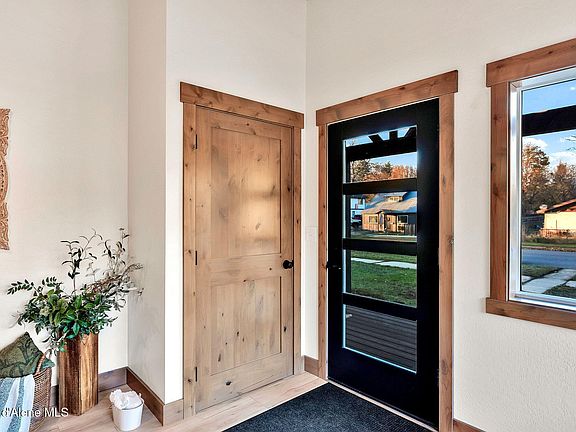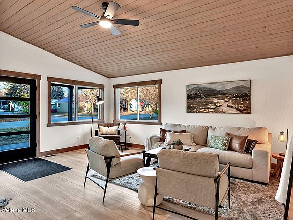 This beautifully renovated, single-level home offers 3 bedrooms and 2 bathrooms in an ideal location in Sandpoint's core. Completely updated with modern finishes and rustic charm, this property is better than new construction. Located on a corner lot in an established neighborhood with mature trees and ample space between homes, it's within walking distance to downtown, parks, schools, the library and more. With alley access, there's potential for an ADU. Inside, vaulted ceilings and abundant natural light highlight an open-concept kitchen and dining area, featuring new cabinetry, quartz counters, a gas range, and a large island perfect for entertaining and a lovely space to enjoy daily. The thoughtful layout includes a master suite, mudroom, and an attached garage. Knotty alder trim and doors add warmth throughout. You'll enjoy a new furnace, flooring, and more! The outdoor space boasts three decks, a stone patio, and a freshly seeded backyard ready to flourish in the spring.